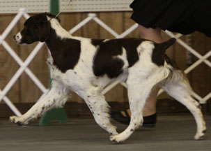 Ty has a ton of go and never seems to get tired! He is hard running, has a great long, powerful gait that allows him to cover the ground with ease and grace. He has a great nose, is independent, and hunts hard. Ty is outgoing, smart, sweet, and always manages to keeps me on my toes. And even though he's a large Brittany, his conformation is very balanced. He was one of the top placing dogs at Brittany Club field trials in 2012 and 2013 as well. He has placed in almost every trial as an adult dog. Ty is on the Brittany field trial circuit with Ed Tillson of Tequila Kennels currently, and earned many placements in Gun Dog stakes all around the midwest in 2014. He has qualified for both the Open and the Amt National All Age Championship in 2015 th and we are planning on running him in Booneville, Arkansas in November!