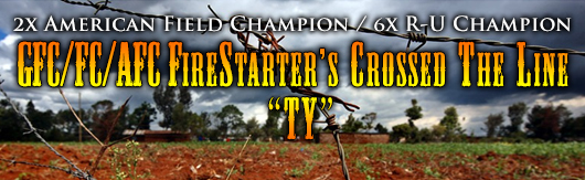 Ty is out of my big running, true All Age Dog, FC Making R-Point (Colorado All Breed All Age Dog of the Year in 1999) and an amazing, stylish Shooting Dog, FC Windtuck's Enough Said (Skyline Brittany Club's Field Dog of the year in 2004), owned by Jim & Leslee Masolotte.